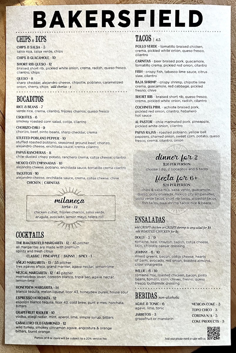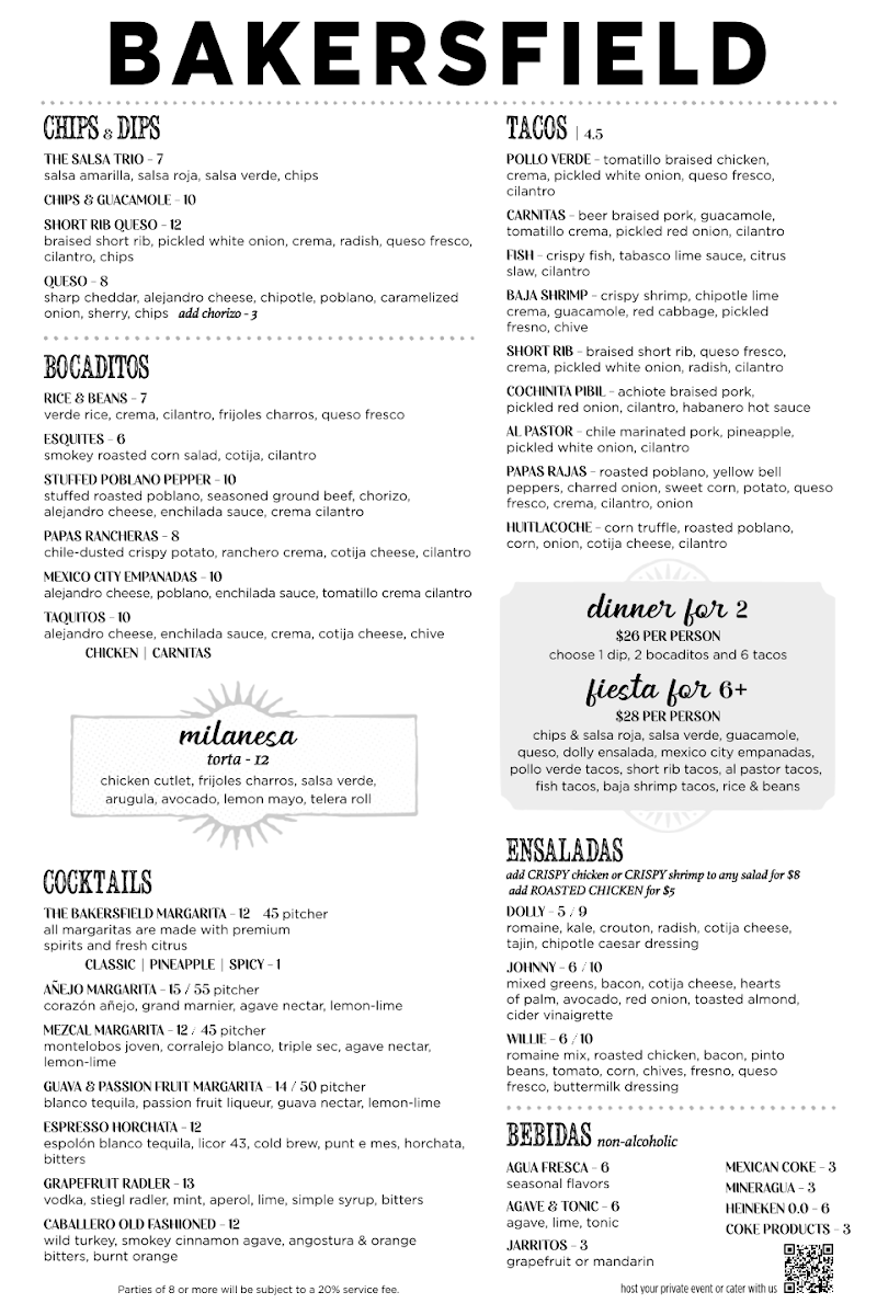 $26 Per Person - choose 1 dip, 2 bocaditos and 6 tacos