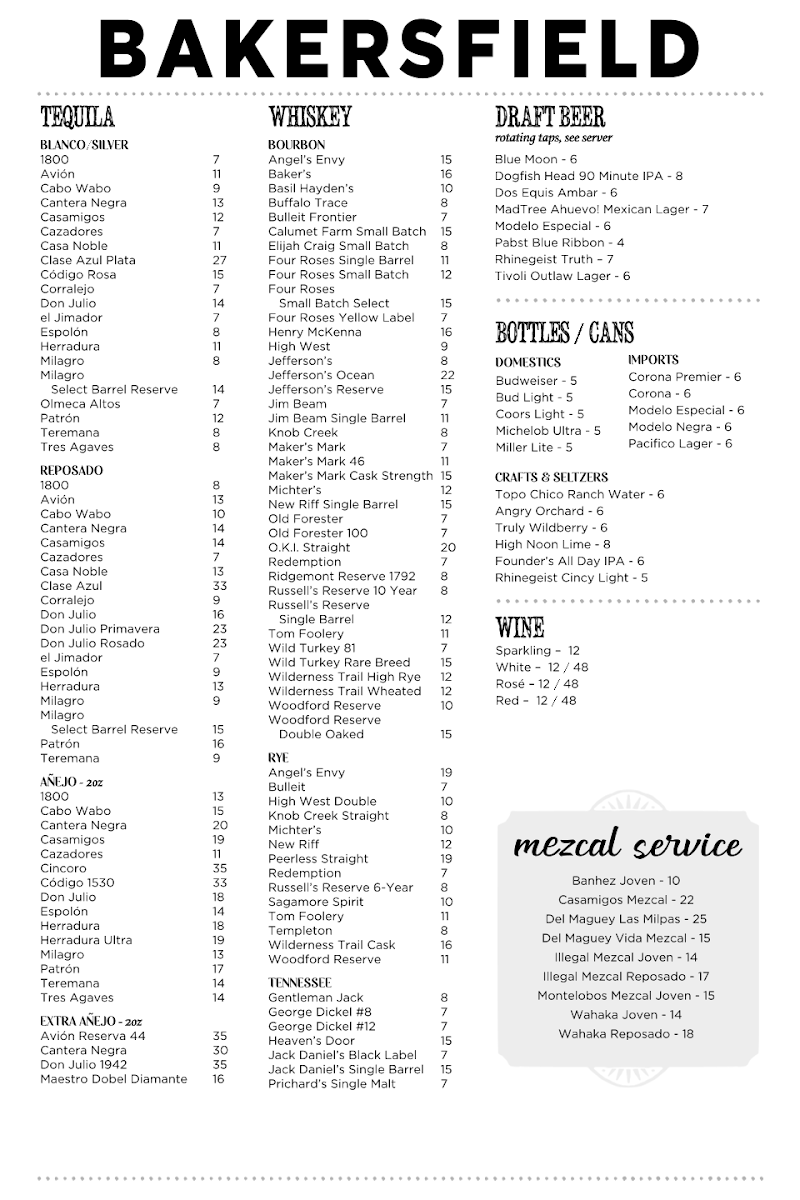 The Bakersfield Margarita $12 / $45